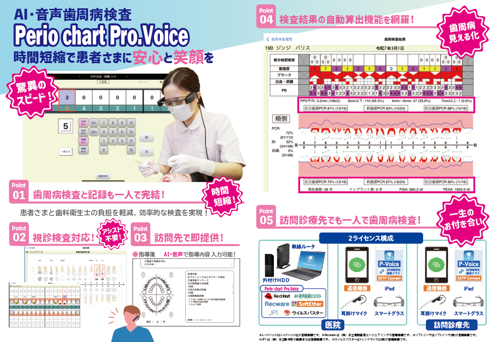製品情報 ホーム Perio chart Pro.Voice AI・音声歯周病検査システムPerio chart Pro.Voice他社レセコンを導入されている医院様でもご使用いただけます。 AI・音声歯周病検査システムPerio chart Pro.Voice他社レセコンを導入されている医院様でもご使用いただけます。 〒700-0971 岡山県岡山市北区野田3丁目12-33 TEL:086-243-3003 FAX:086-243-6838 〒700-0971 岡山県岡山市北区野田3丁目12-33 TEL:086-243-3003 FAX:086-243-6838COMPANYご挨拶会社概要営業所案内PRODUCTHi Dental Spirit Revo.11AI・音声電子カルテスマホ シリーズi-DSシリーズ最先端のセキュリティオンライン請求/電子媒体請求データ移行その他オプションIRIRトップIRニュース一覧株式基本情報IRライブラリー一覧経営成績SUPPORTSUPPORTトップRECRUITメッセージ新卒採用について中途採用について先輩社員の声CONTACT医療従事者向けその他事業者向けIRの方向け消耗品注文フォーム Hiクラテス株式会社©2017-2026 Hi crates Co. Ltd. All Rights Reserved.