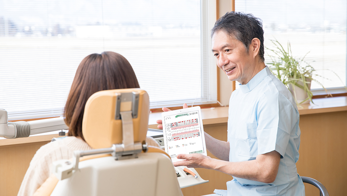 口腔内検査の結果をチェアサイドで入力、そのまま治療説明まで。
