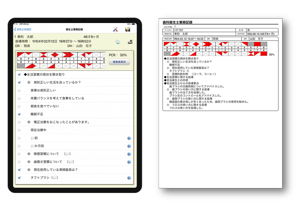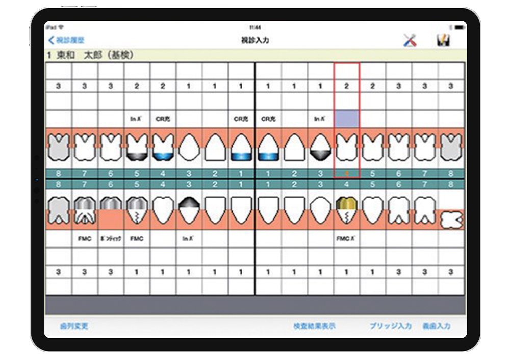 電子カルテの歯周検査情報へ反映。