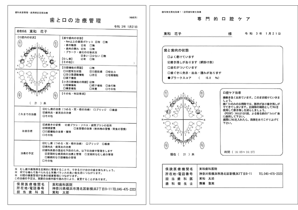 指導箋の歯式情報(残存歯数・プラーク付着部位・プラークスコア)を反映
