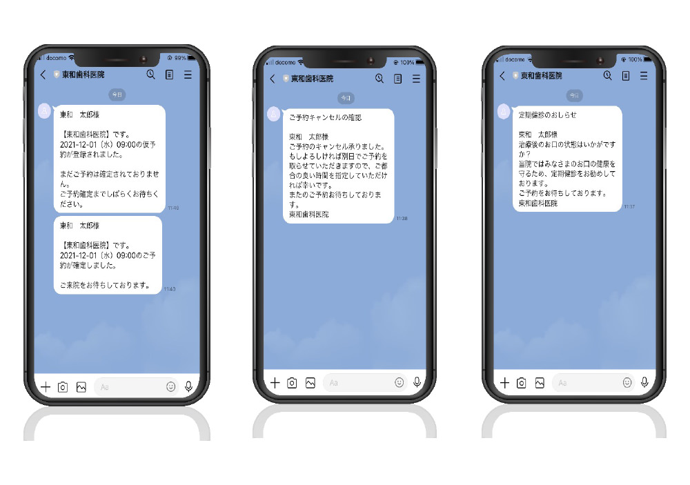 予約を行った際にLINEに仮予約の連絡や確定連絡を入れることが可能。